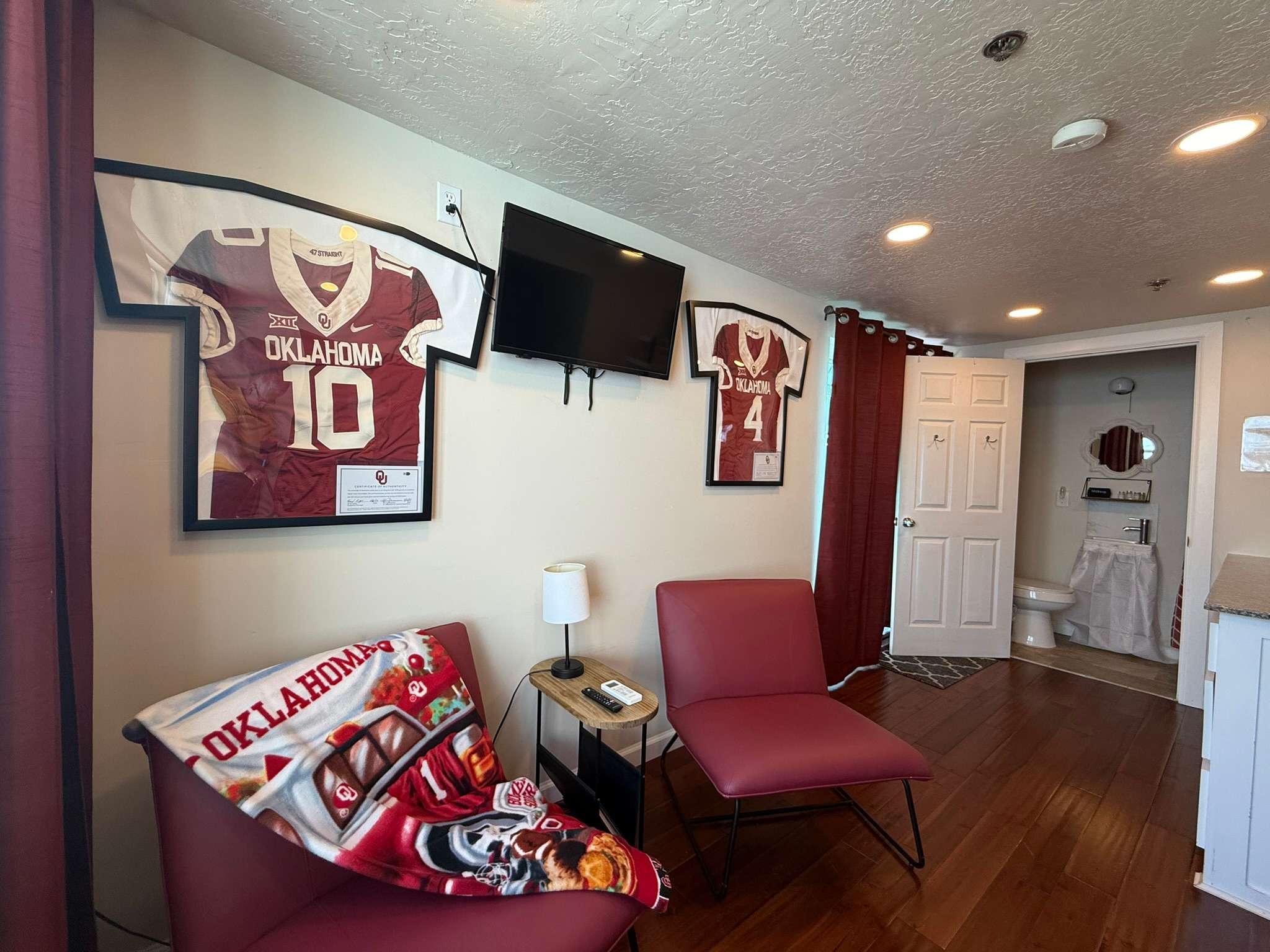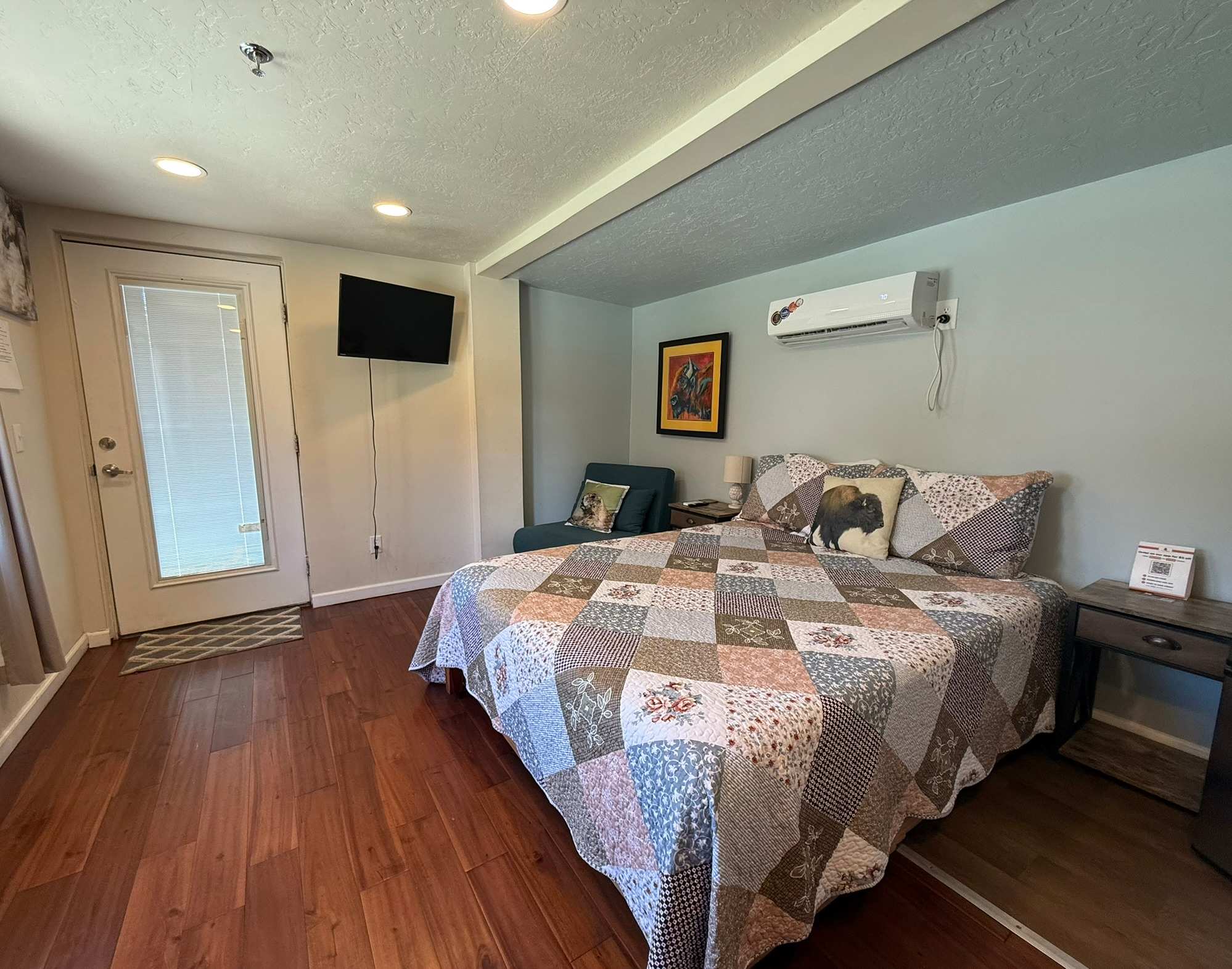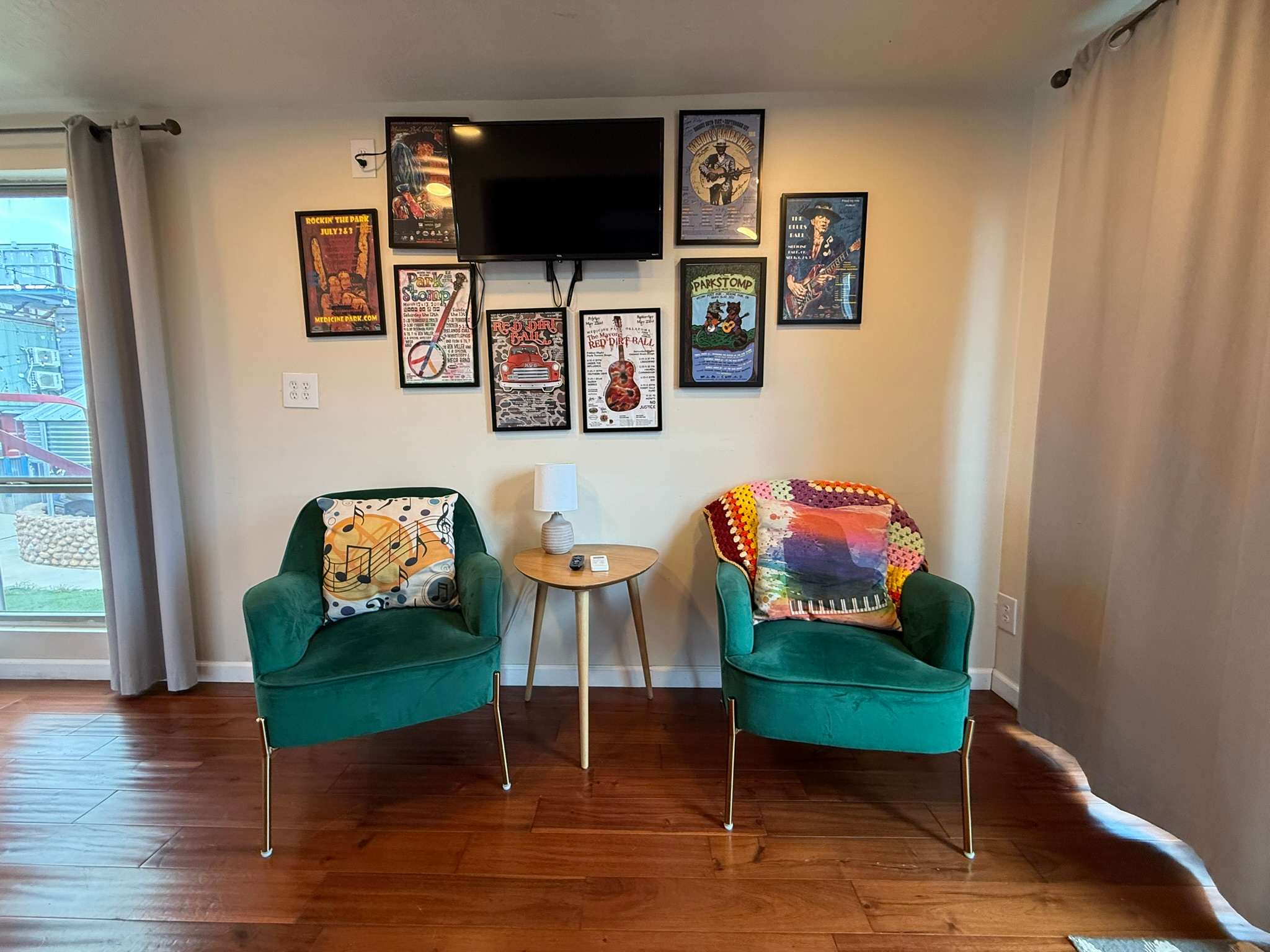 Modern tiny-home resort in the heart of Medicine Park. Each themed unit offers a queen bed plus extra sleep space, walk-in shower, kitchenette, fast WiFi, Smart TV, and either a private porch or rooftop deck. Steps to shops, dining, Medicine Creek, and live music. Access to Refuge Ale House, Little Bear Street Eats, fire pits, and the Grainery Gazebo. Extra guest and pet fees apply.