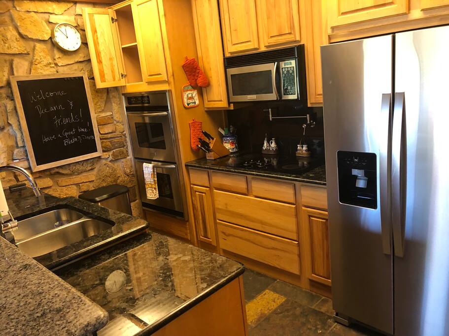 Treat yourself to towering glass windows, 3 oversized stone fireplaces, hot tub, mountain views, & seating for 24; enjoy multiple entertainment & living areas w/ premium streaming and cable channels, billiards, board games, a baby grand piano, and more--all in a 2,000 sq ft lodge. Sleeps 8, but designed for couples or small families who appreciate room to breathe and luxury touches. Shared pool. 5 min to Medicine Park & trails. Price based on # guests+season.