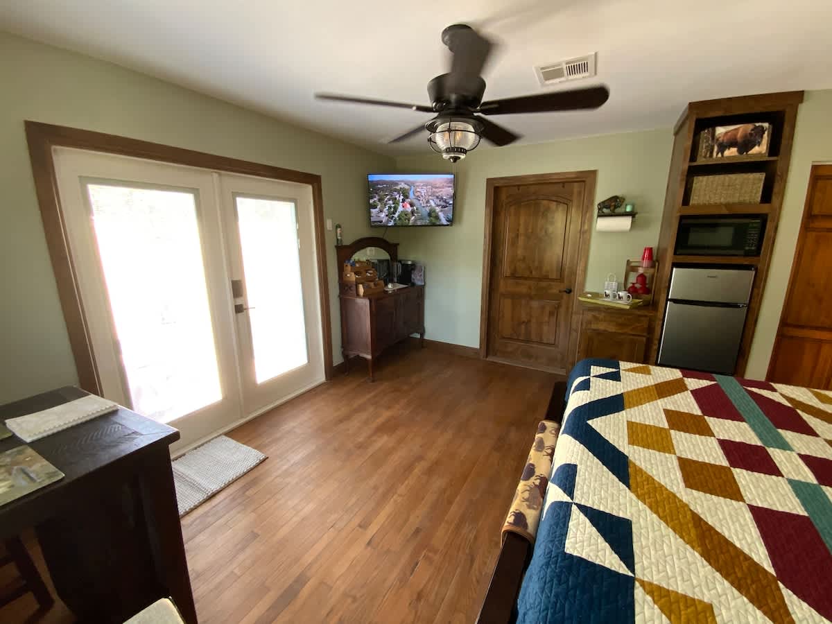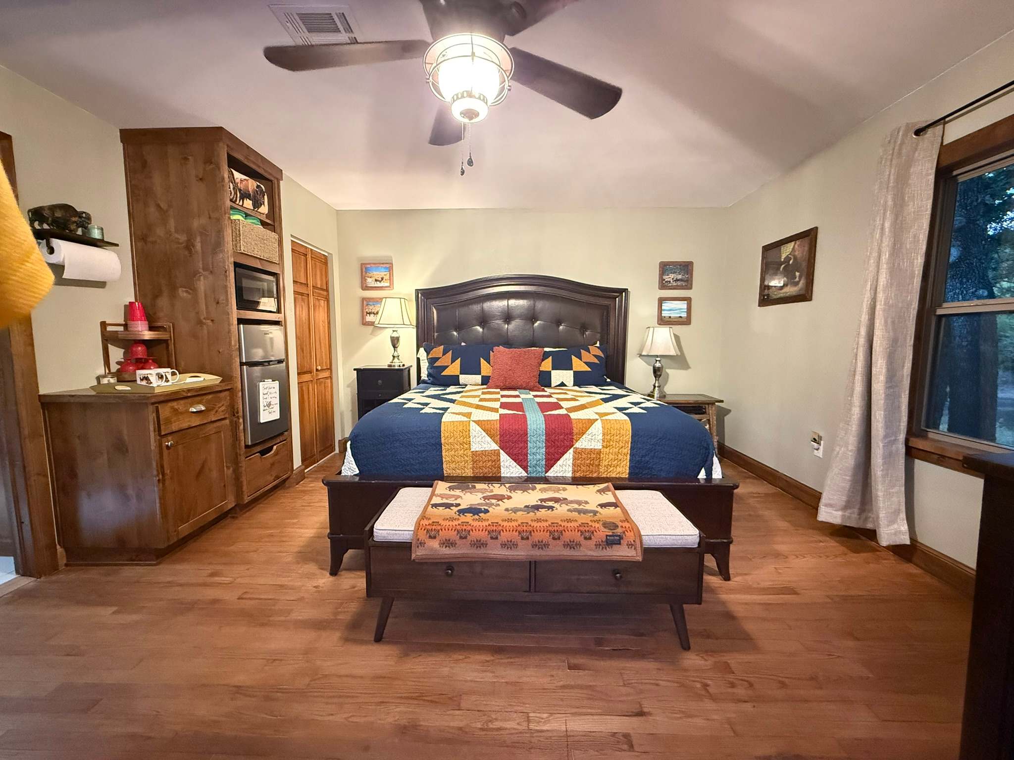 Buffalo Zen offers quiet comfort in Medicine Park. Relax in your outdoor jacuzzi, stargaze by the fire, and explore scenic hiking and biking trails minutes away. Ideal for couples or solo travelers visiting the Wichita Mountains or Medicine Park festivals. Enjoy a luxury hot tub and fire pit under the brow of the mountain. Minutes from Cobblestone Row.